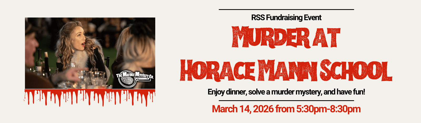 Saturday, March 14, 5:30 PM – 8:30 PM, Horace Mann School - Bronx. Jitney bus pickup at RSS: 4:30